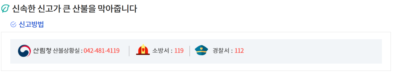 혹시 산불이 의심되는 상황으로 보이거나 신고를 해야 할 때 막막하다면? 휴대폰에 어플을 미리 설치해두세요!